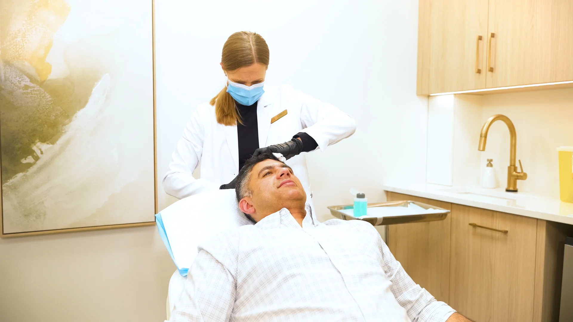 We prep your skin or scalp and apply exosomes post-treatment (like microneedling).
