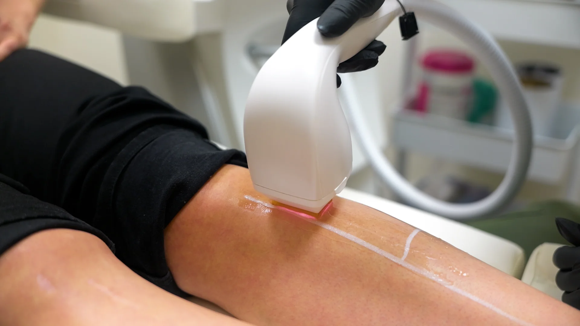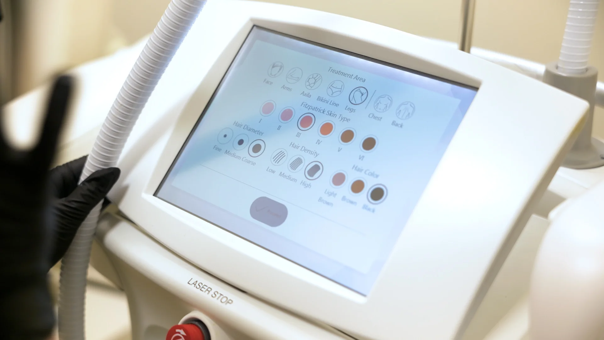 A laser targets hair follicles to reduce future growth.